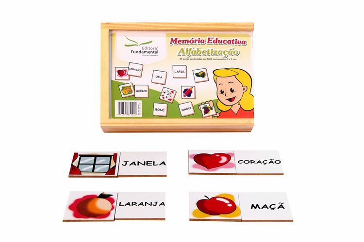 Trabalha a alfabetização utilizando palavras do cotidiano da criança associada a figuras, desenvolve o raciocínio lógico, a comparação e a memorização de elementos.